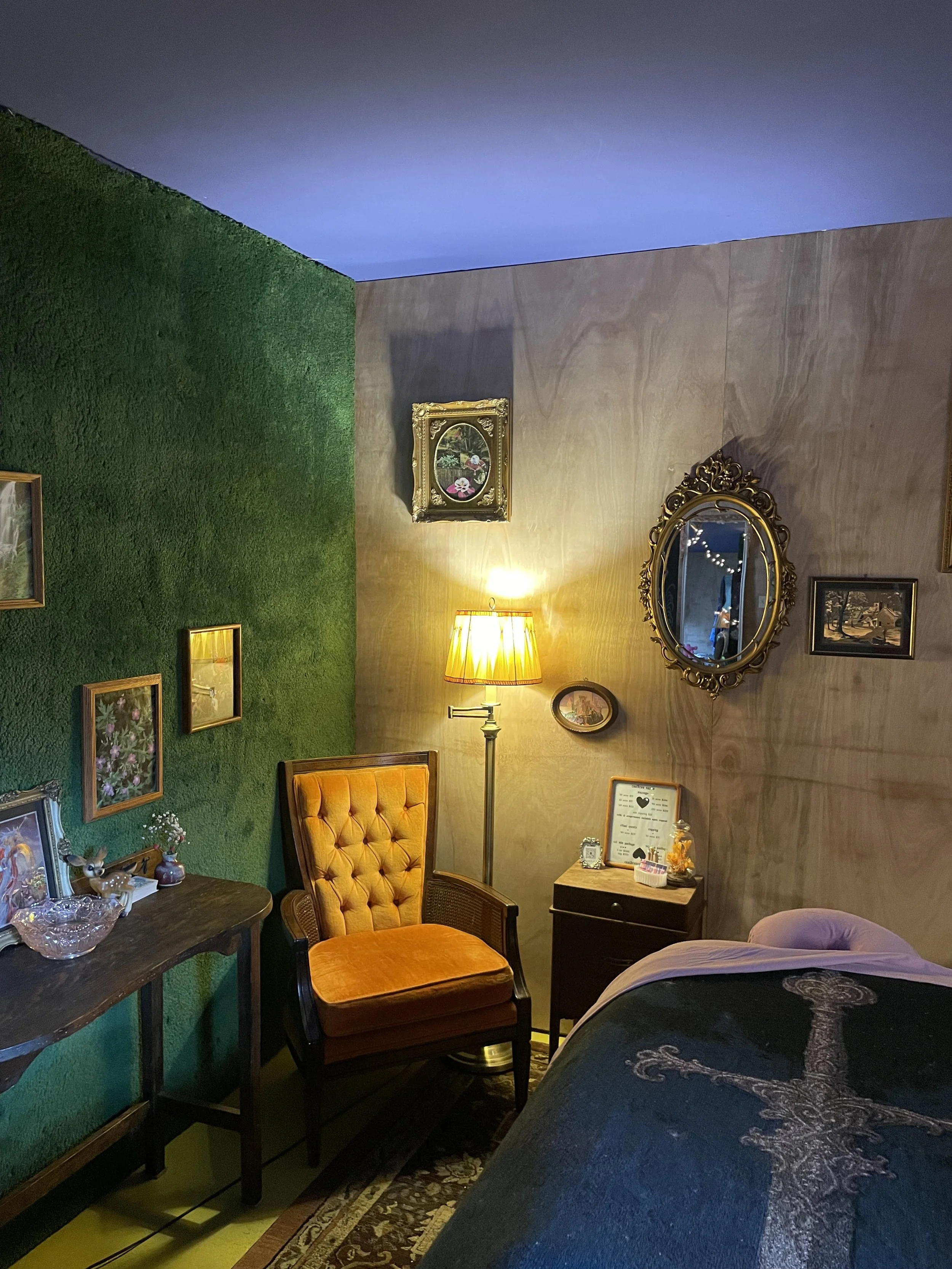 cauldron castle is an offering of bodywork, energy work, and spell work, often integrated together. this work is carried out in the liminal space between fantasy and reality, where everything we can imagine is real. the physical and metaphysical location of this work is the heart- our cauldron of creation within the body. the body is a sacred gift, a portal into the physical realm where we can play and create. in this realm, the body has a special role in both our wounding and our healing. both our trauma and our strength are carried through the dna of our ancestral lineages, all the way back to the trees and mycelial networks we were born from. at the core of our wounding is the false belief that anyone or anything is separate. healing work is inherently concerned with the harm that white supremacist capitalism inflicts upon individuals, the collective, and the planet. the oppressed and the oppressor have both been genetically altered by this system. these ancestral wounds are carried within all of us. the false belief in separation harms all of us. cauldron castle is a resource for remembrance, that nothing and no one is separate.
